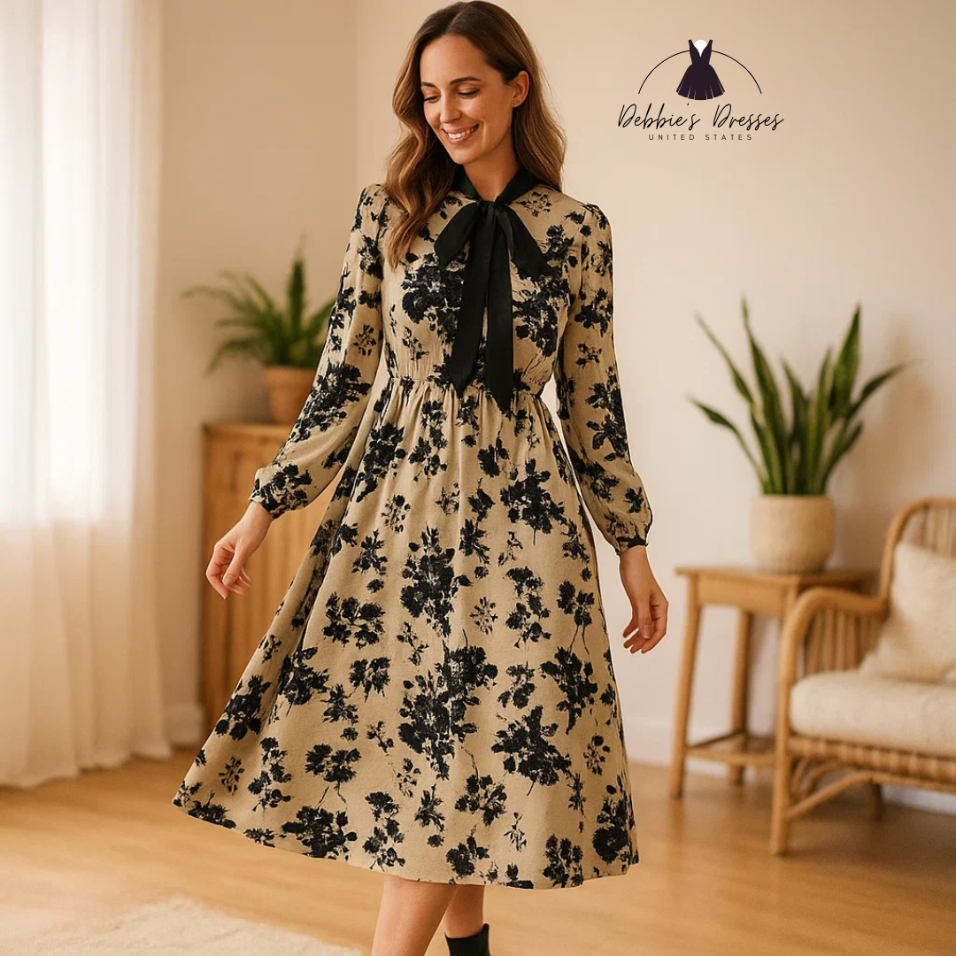 ✓ Statement Bow Tie – The bold bow neckline adds a touch of classic drama and elegance.