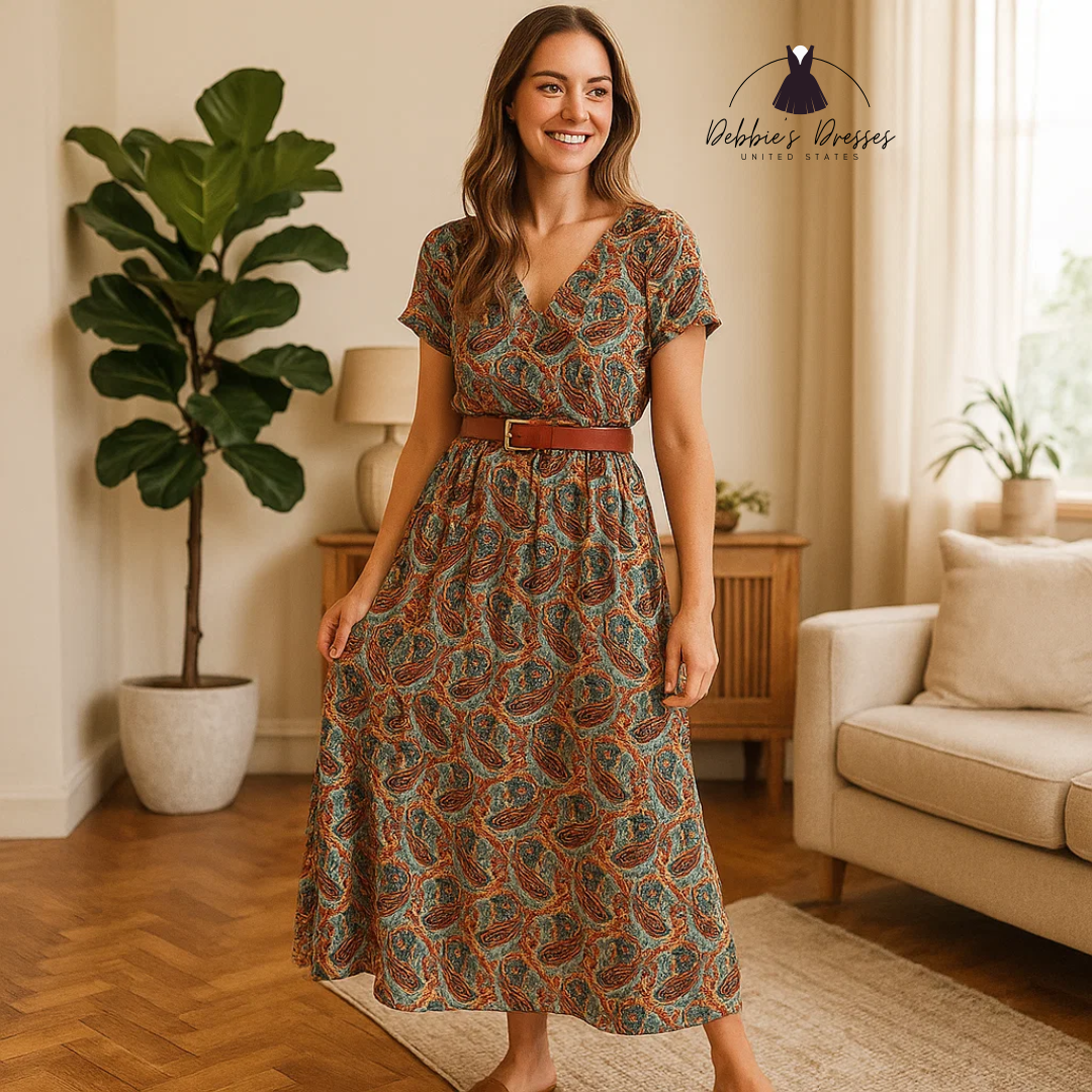 Introducing the Kelsey Bohemian Paisley Dress, a stunning fusion of vintage charm and effortless style. Designed for free-spirited women who love flowing silhouettes and intricate prints, this dress offers a relaxed yet sophisticated look.