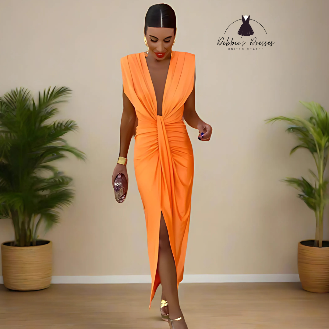 ✔ Plunging Draped Neckline: A bold statement that enhances elegance and allure.